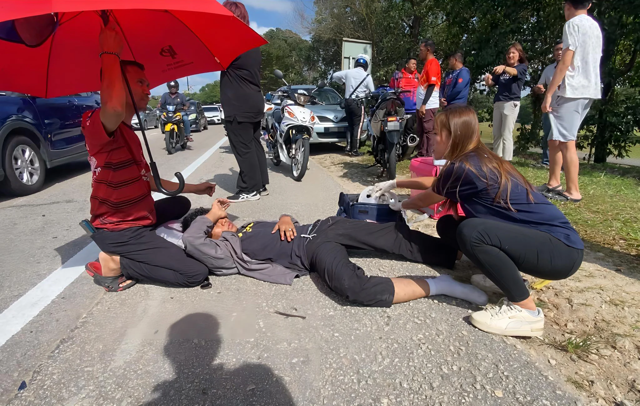 据了解,伤者是一名约20岁的巫裔青年,与家人居住在马赛城。他利用假期兼职送餐员,未料途中发生意外,倒卧路中央,其父亲得知消息后,毫不犹豫赶到现场,看着儿子受伤的模样,心疼不已。