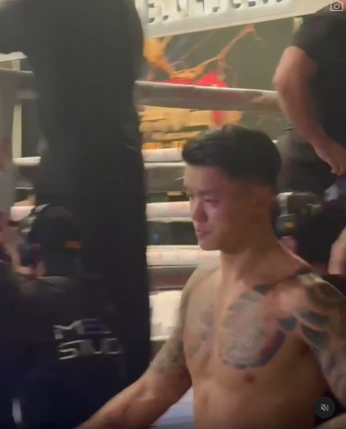 与此同时,四海在擂台上兴奋庆祝,支持者们高呼其名,而 Flash Daddy神情落寞,眼角受伤,默默离场。曾自诩“香港战神”的他,如今却以最快 TKO 纪录败北,拳迷议论纷纷!
